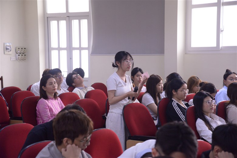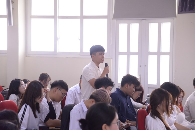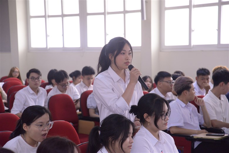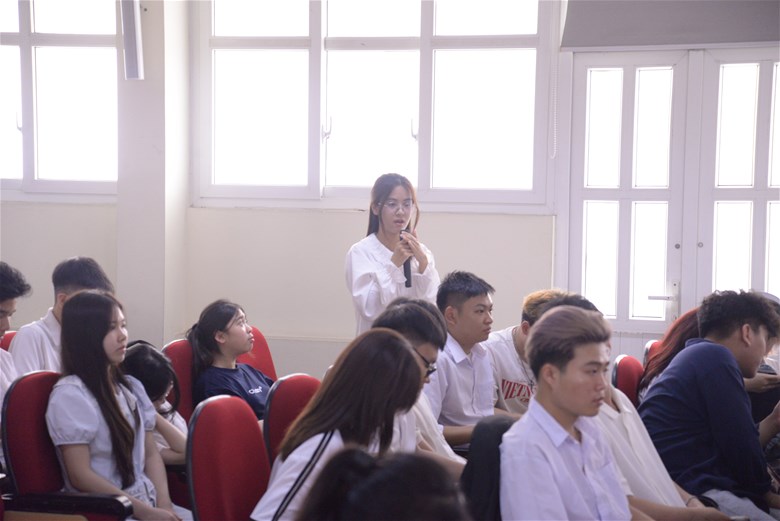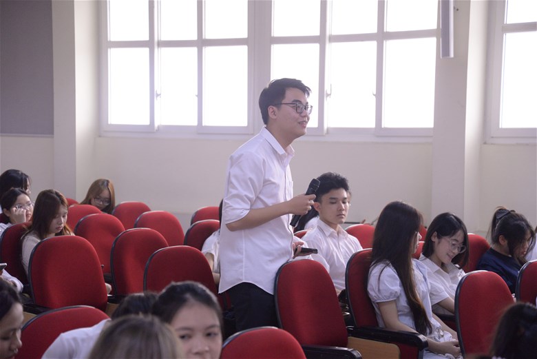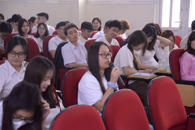 Sinh viên ngành Ngôn Ngữ Anh đặt câu hỏi trực tiếp tại phiên đối thoại