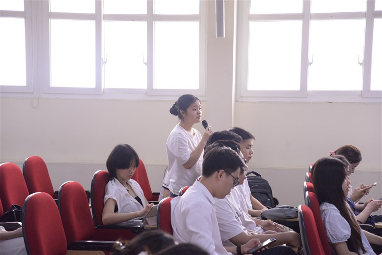 Trong lĩnh vực đào tạo, sinh viên đặc biệt quan tâm đến chuẩn đầu ra và nội dung chương trình học. Đại diện Khoa cho biết chuẩn đầu ra tiếng Anh đạt bậc 5/6 theo Khung năng lực ngoại ngữ Việt Nam, IELTS từ 6.5 trở lên. Chương trình đào tạo được thiết kế theo hướng tăng cường thực hành, tích hợp công nghệ và gắn với nhu cầu thực tiễn ngay từ năm đầu, giúp sinh viên sớm hình thành năng lực nghề nghiệp và thích ứng với môi trường làm việc hiện đại.