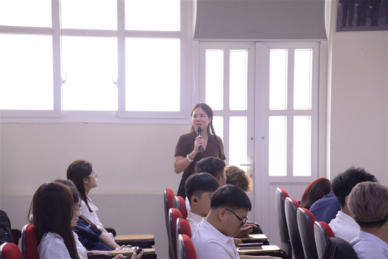 Trong phần trình bày về chủ trương và chính sách, cô Nguyễn Thị Thắng đã cung cấp cái nhìn tổng thể về định hướng phát triển giáo dục của Nhà trường. Theo đó, các chính sách được xây dựng trên nền tảng cân bằng giữa quyền lợi và trách nhiệm của sinh viên, hướng tới mục tiêu đào tạo nguồn nhân lực chất lượng cao.