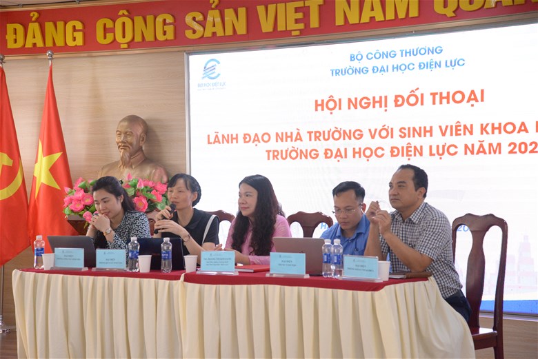 Phần đối thoại trực tiếp giữa sinh viên với Lãnh đạo Nhà trường và các đơn vị chức năng là điểm nhấn của hội nghị, diễn ra trong không khí sôi nổi, cởi mở và mang tính xây dựng cao. Các câu hỏi được đặt ra tập trung vào nhiều lĩnh vực thiết thực, phản ánh rõ mối quan tâm của sinh viên đối với quá trình học tập và định hướng nghề nghiệp.